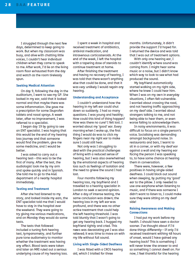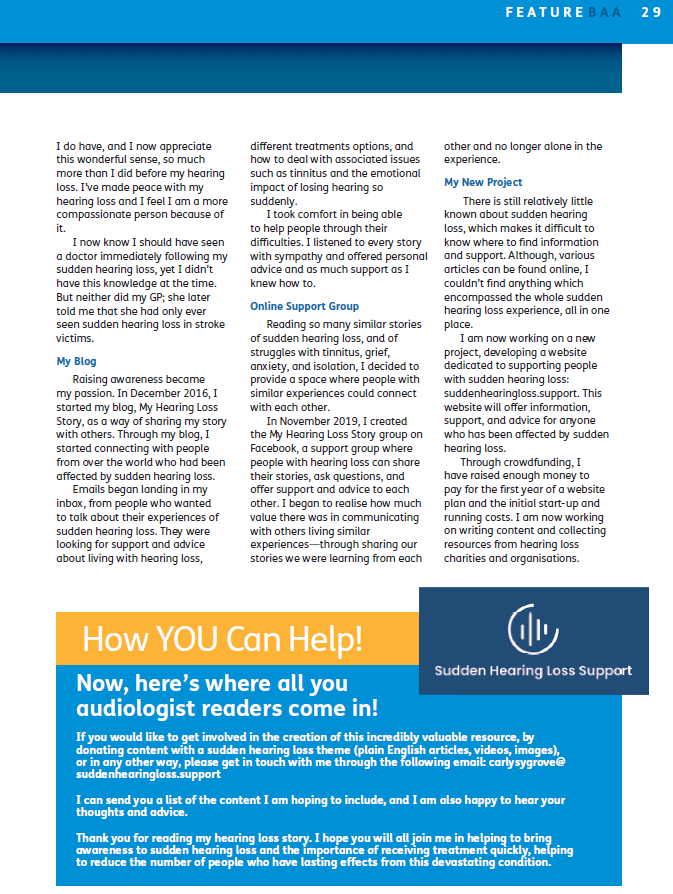 Please find below an article I wrote for the current edition of the British Academy of Audiology (BAA) magazine which tells my story and explains my motivations for creating this new website.