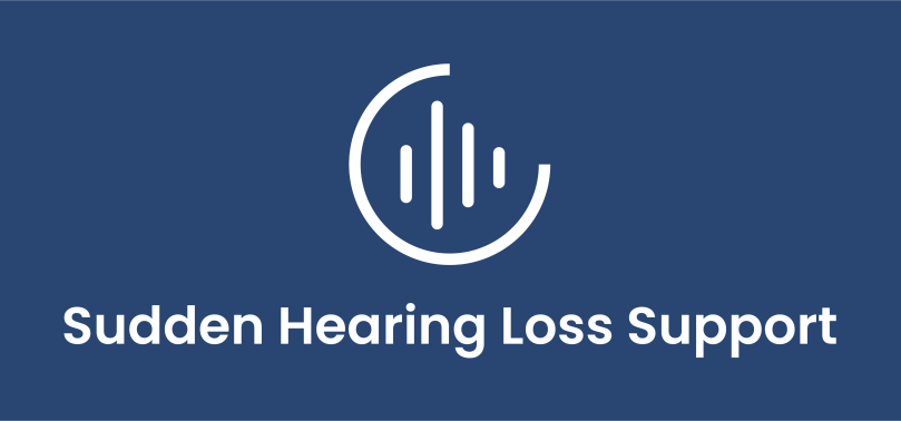 Logo: dark blue rectangle with a white incomplete circle in the middle. Inside the circle are 4 vertical lines of different lengths. Under the circle is written, “Sudden Hearing Loss Support”.